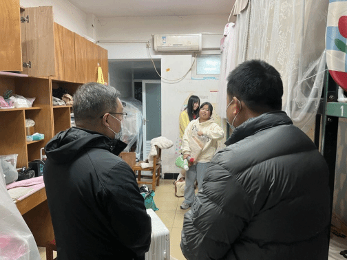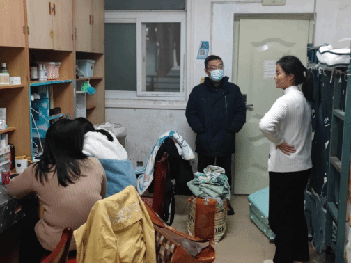 返校第一天,学院领导班子、学生科长带领专、兼职辅导员深入学生宿舍,对返校学生进行亲切慰问。