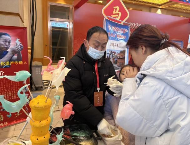 热闹非凡的第五届非遗嘉年华年货市集上,学子们近距离了解非遗文化,感受年俗的鲜活气息。在非遗美食区,同学们品尝孝感麻糖、黄石港饼等非遗美食,聆听美食制作技艺的传承故事;在民俗体验区,参与吹糖人、打年糕等传统年俗活动,学子们在动手实践中体会非遗与日常生活的紧密联结;在非遗好物展位前,精美的汉绣饰品、大冶刺绣工艺品令人目不暇接,同学们与非遗工坊负责人沟通交流,了解非遗产品的设计理念与市场推广情况。