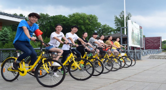 为了更好的完成为期一周的志愿服务,就要了解景点方位以便做好引领和介绍。我们决定结伴低碳出行熟悉景区。