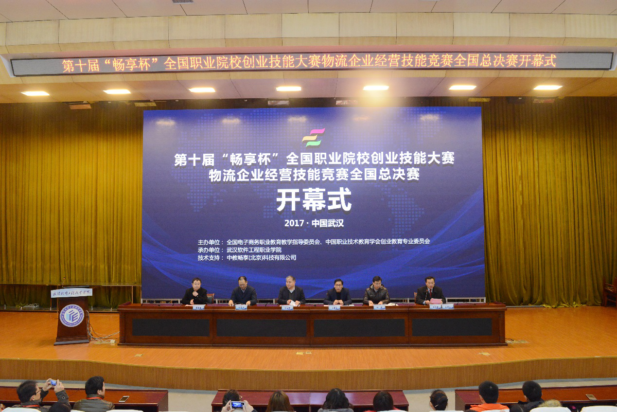大赛由全国电子商务职业教育教学指导委员会和中国职业技术教育学会创业教育专业委员会联合举办,我校商学院和武汉财经商贸职业教育集团承办。山西省财政税务专科学校校长、全国财政职业教育教学指导委员会副主任、教育部高职高专经济类教指委财会专业委员会主任赵丽生,全国电子商务职业教育教学指导委员会委员、中国职业技术教育学会创业教育专业委员会委员、中教畅享(北京)科技有限公司董事长黄学全,北京师范大学教育学部职业与成人教育研究所教授、副所长、博士生导师和震,武汉市教育局副局长刘永生,我校党委书记江贤英、副校长王路群及其他院校领导出席了此次大赛开幕式。