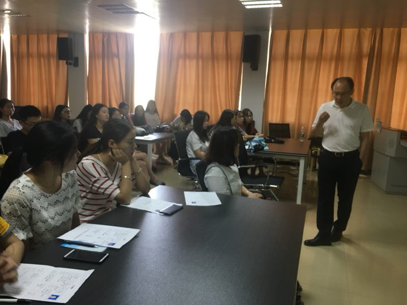 (商英1603王辛 讯)2018年6月6日下午万豪宣讲会在教学楼1317教室顺利进行。商学院副院长肖新梅、英语教研室主任王颖及专业老师、商英1603班全体同学参加了此次会议,会议由王颖老师主持。