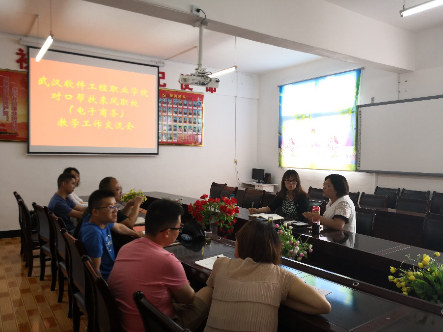 来凤县中等职业技术学校结合地区发展提出建设电子商务专业的思路,需要我院提供专业建设帮扶。在电子商务专业建设交流座谈会上,电子商务教研室主任胡莹老师介绍了我院电子商务专业的开展情况,赵爱香老师介绍了电子商务专业的发展情况及市场人才需求情况,然后双方根据来凤县中等职业技术学校的具体情况就如何开设电子商务专业进行了深入的交流。