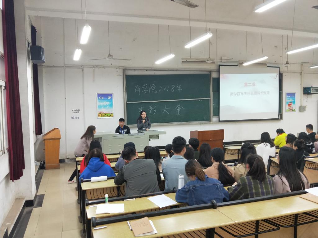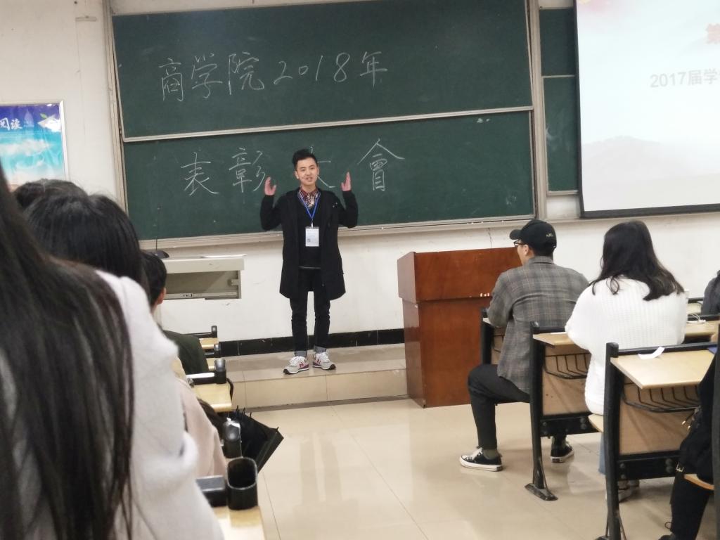 此次大会商学院赵珊科长表达了对上一届干部工作的肯定和对他们的殷切期望与不舍。17届团总支副书记高科的工作经历让大家受益匪浅。作为18届的学生干部代表青协会长程亿,也向学长学姐们表达了祝贺。团总支负责人彭老师表示了自己对18届干部的期望,并且希望17届的干部能够记住自己永远是商学院团学组织的一员,希望新一届的干部能够好好带领商学院发展商学院。