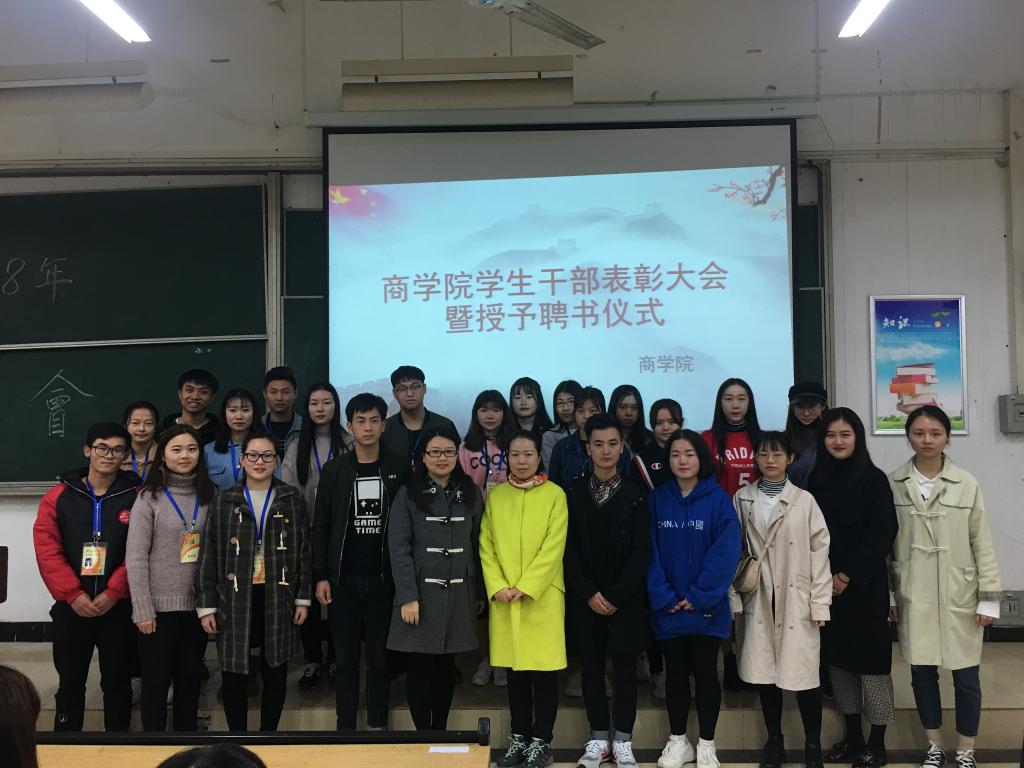 (宣传部讯)11月15日中午,我校商学院团学组织在1栋教学楼3楼开展商学院2018届表彰大会。参与人员为商学院学生科科长赵珊科长、团总支负责人彭月玉老师,17级、18级团总支、学生会、政研社、青协干部。