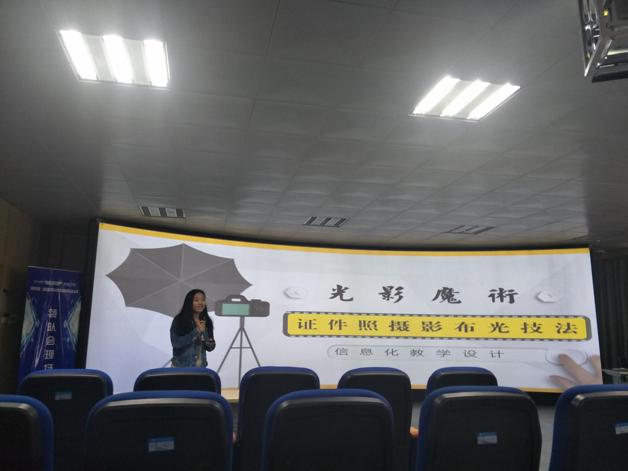 张聪老师以《光影魔术之证件照摄影布光技法》为主题向大家展示了自己的信息化教学设计,她以说课的形式通过教学分析、教学策略、教学过程、教学反思四个方面进行了阐述,在她的教学过程中,以探究式学习法让学生建立布光思维,形成布光设计意识,学生通过问题关卡、小组合作、成片比拼的形式对本次课内容进行了学习,掌握了四种不同的布光方式对摄影的影响。