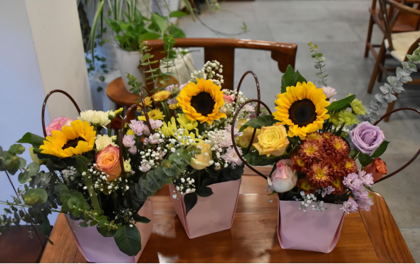朵朵新鲜娇嫩的花儿,在选手手中组合成“可爱深红映浅红”的艺术品。多情的玫瑰、纯洁的满天星、热情的向日葵、雅致的雏菊,单独看已是“乱花渐入迷人眼”,组合在一起更是充满了诗情画意。