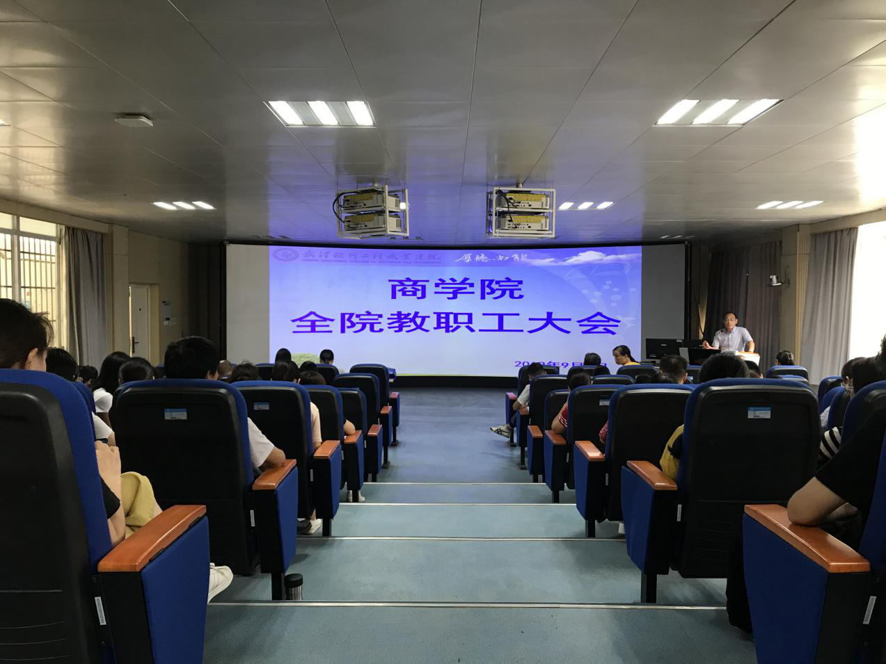 怀着对新学期的美好憧憬,为使新学期工作开好头,起好步,统一思想,明确方向,2019年9月5日下午,商学院全院教职工大会在教学楼2233报告厅隆重召开。大会由罗银舫院长主持,全体教职员工参加会议。