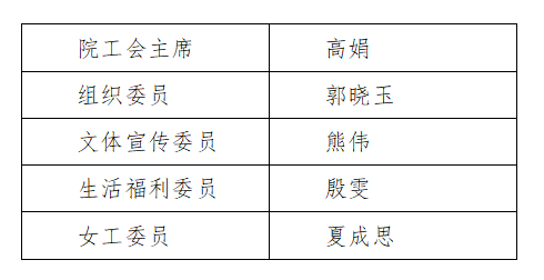 经个人申报、学院领导评议、全院职工投票(88人,75人同意,13人弃权)、党总支会决议通过,现将2024商学院新一届分工会委员改选结果公示如下: