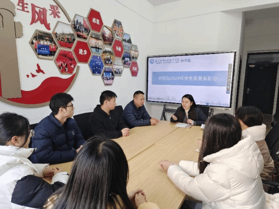 2024年12月31日下午,商学院在一站式社区118室隆重举行了2024年学生荣誉表彰会。此次会议的目的是为了表彰那些在本年度获得国家奖学金、武汉市政府奖学金、励志奖学金的优秀学生代表,同时也是为了激励全体同学继续努力,追求卓越。商学院党总支副书记高娟、学生科长方立出席本次会议。