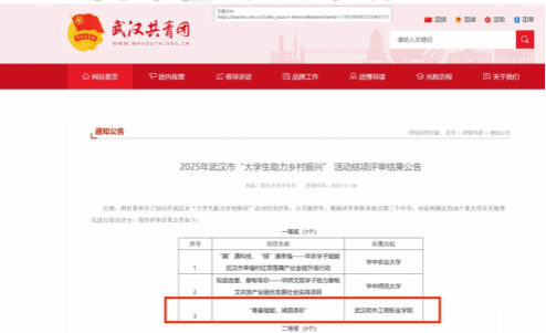 (文:邹莹,图:商学院)近日,2025年武汉市“大学生助力乡村振兴”活动评选结果揭晓,武汉软件工程职业学院商学院“青春赋能,湖泗添彩”社会实践项目从众多参赛团队中脱颖而出,荣获一等奖。该项目以电商直播为切入点,深度融合校地合作与数字技术,探索出一条青年学子助力乡村振兴的可持续路径。