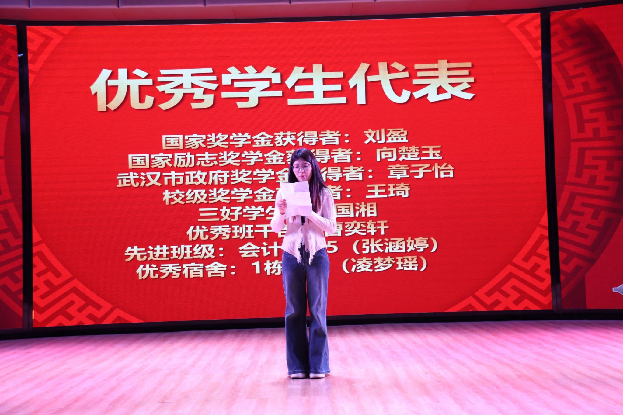 作为国家奖学金获得者,刘盈同学代表全体优秀学生发言。她首先向学院领导、老师的悉心培养以及同学们的热心帮助表达了衷心的感谢。随后,她结合自身的学习经历,分享了在专业学习、实践探索中的感悟与心得,鼓励在场的同学们珍惜大学时光,明确学习目标,勇于拼搏进取,在追求理想的道路上脚踏实地、不懈奋斗,用努力书写青春华章。刘盈同学的发言真挚恳切、振奋人心,赢得了现场师生的阵阵掌声,也让大家深受启发。