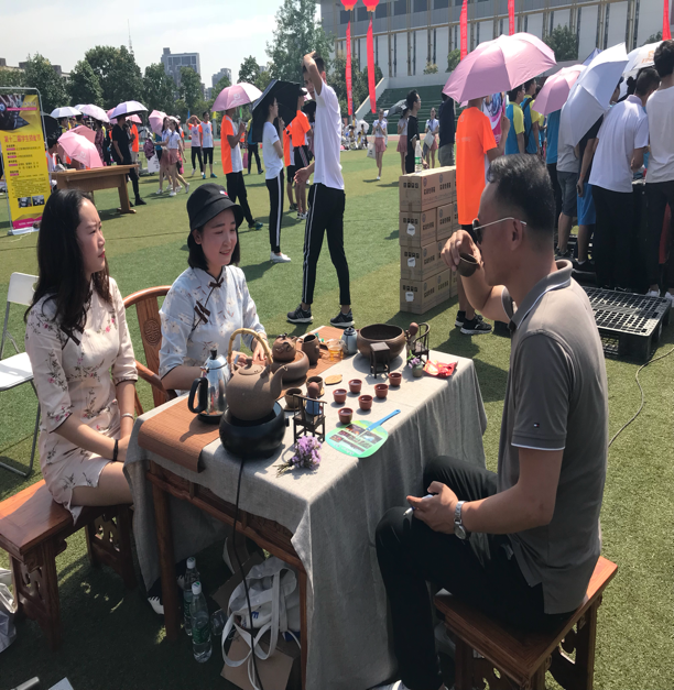 此外,商学院还设置了商品陈列、商品码托、电动托盘搬运和“高山流水遇知音,佳叶玉露共品茗”茶艺表演,同学们、老师们都驻足观看,并亲自体验或落座茗茶,反响十分热烈!