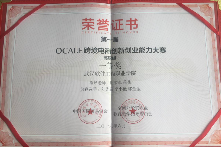 报关1401班刘先锋、李小艳和电商1503班郭金金组成的武汉软件工程职业学院一队以运营得分100,报告得分90.79,总分第一的好成绩包揽所有奖项,荣获全国一等奖、最佳运营奖、最佳策划奖。该队店铺的主营产品是消费类电子产品,比赛期间累计成交订单45笔,涉及买家的国家或地区有美国、澳大利亚、加拿大、沙特、欧盟等,总成交金额达3629.37美元。