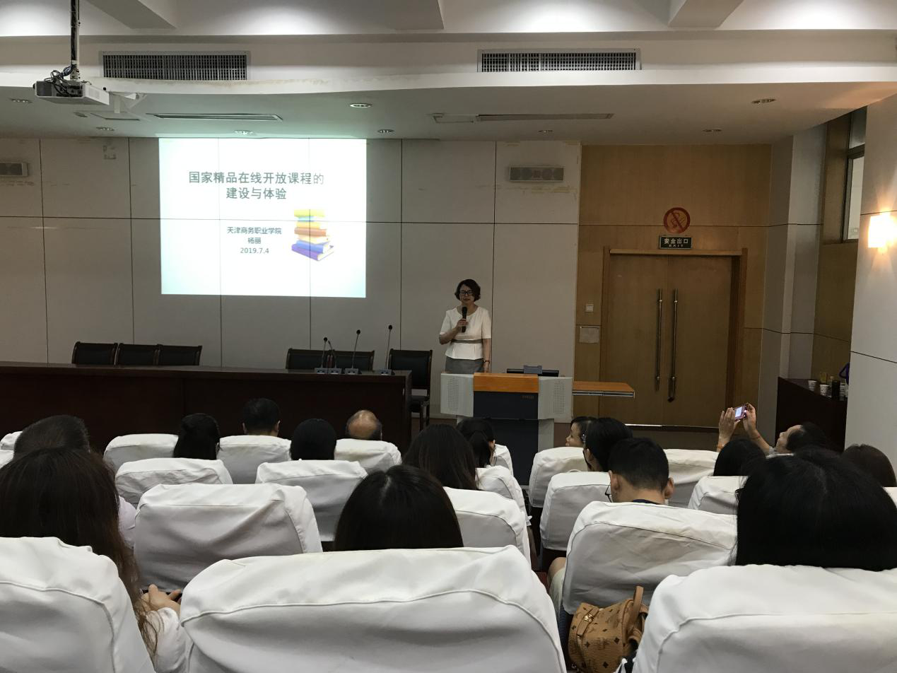 为推进和提升我院精品在线开放课程建设质量,加快教育部现代学徒制试点专业项目建设。7月4日,商学院邀请天津商务职业学院教务处处长杨丽教授,来校给全体教职工开展题为《国家精品在线开放课程的建设与体验》的讲座。杨丽教授是全国黄炎培职业教育杰出教师奖获得者,国家精品在线开放课程主持人,职业教育国家教学资源库子项目负责人,教育部现代学徒制试点项目专业负责人,高级礼仪(礼宾)师,高级礼仪培训师,注册高级商务策划师,注册形象设计师,天津市世界经济学会副秘书长。国家精品在线开放课程《国际商务礼仪》的负责人。讲座由郭黎副院长主持。商学院全体专任教师参加。
