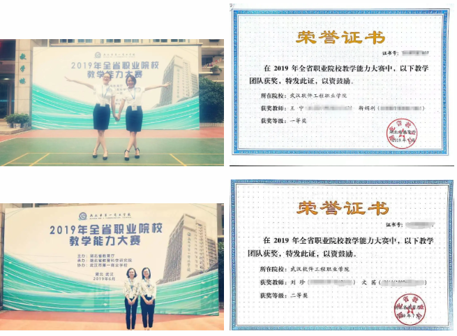 在2019年全省职业院校教学能力大赛中,我院王宁、靳娟利老师荣获一等奖,刘珍、文茜老师荣获二等奖。