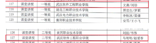 (通讯员:郑美琳)9月初,湖北省职业院校教学能力大赛传来捷报,我院派出参赛的2支教师团队全部获奖。其中文茜/刘珍团队荣获课堂讲授一等奖,马明明/赵爱香团队荣获课堂讲授二等奖。