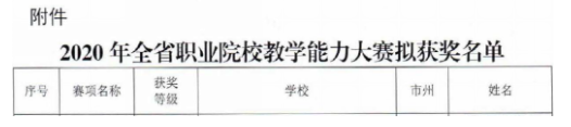 2020年全省职业院校教学能力大赛,经过现场随机抽取选题制作参赛作品、现场随机抽取角色讲解实际教学、现场随机提问答辩等环节的层层比拼,我院刘珍、文茜老师荣获一等奖,马明明、赵爱香老师荣获二等奖。