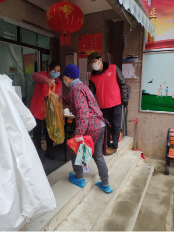 魏芳老师把帮助居民购买的物资送到门口