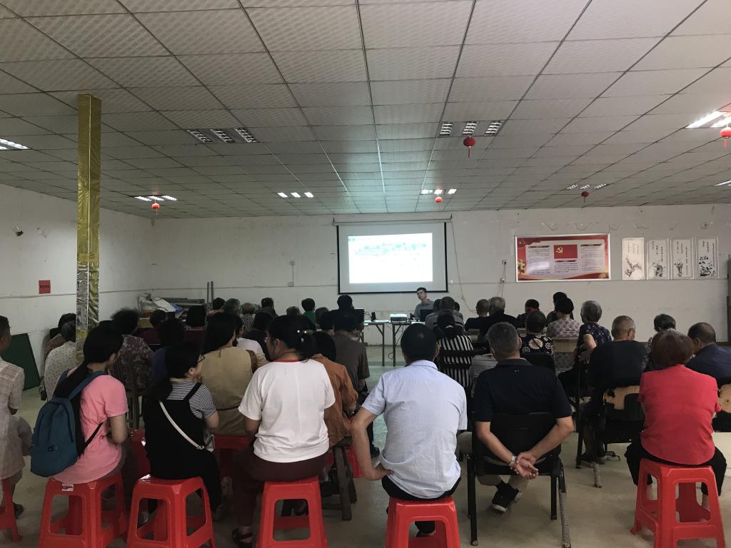 为进一步增强社区居民法制意识,提升居民群众知法、懂法、用法的能力,7月9日上午,商学院第三、四党支部按照“双进双服务”活动安排,到南湖社区开展法律知识讲座,党员老师肖涌在社区老年活动中心给辖区老年人上了一堂精彩、实用的法律知识课,商学院第三、四党支部党员老师和社区居民一起参与学习。