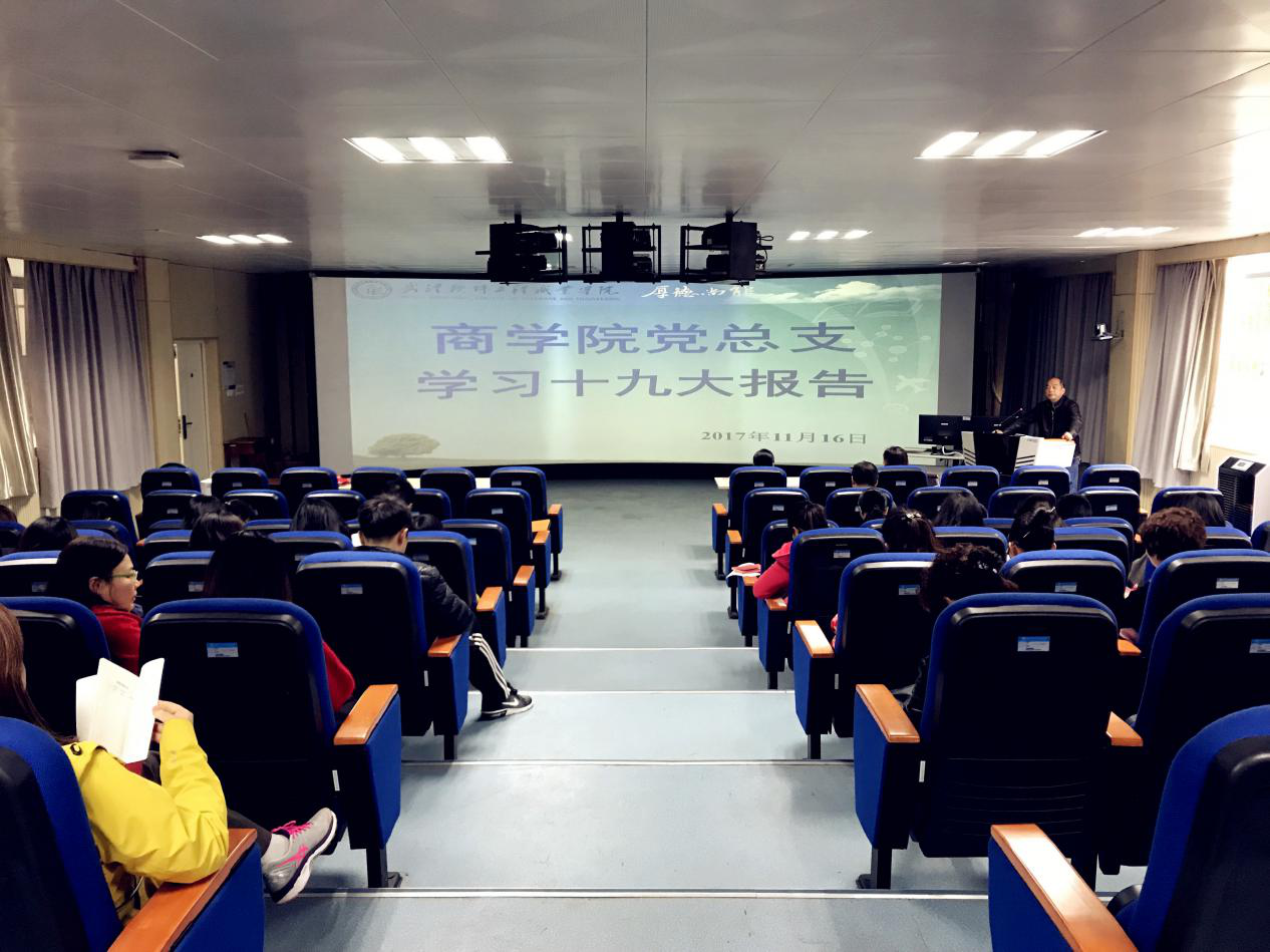2017年11月16日下午,商学院党总支学习十九大报告的活动在2233教室进行,商学院党总支书记刘扬、副书记肖新梅、副院长刘春梅及全体党员参与了此次学习活动。