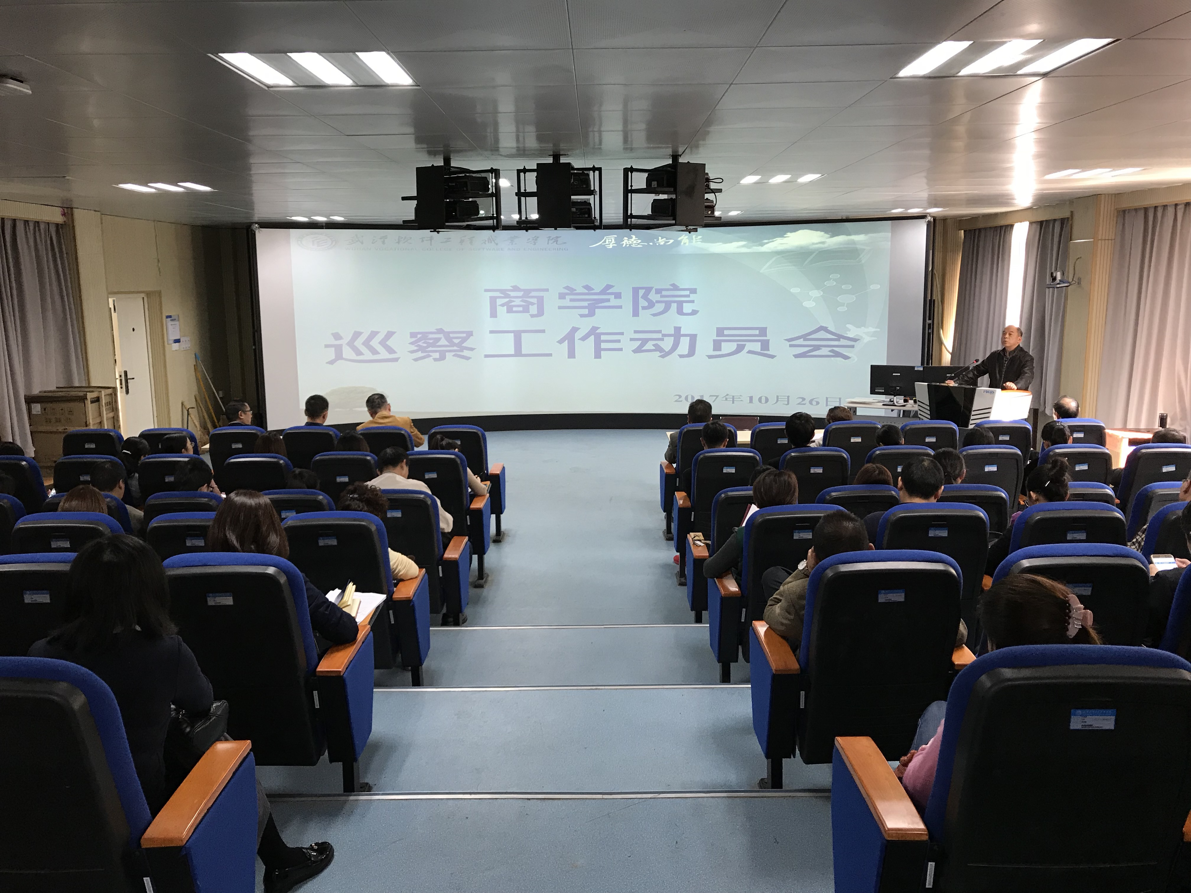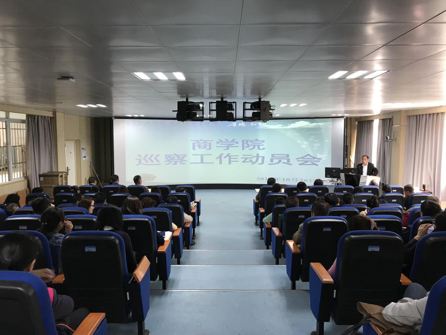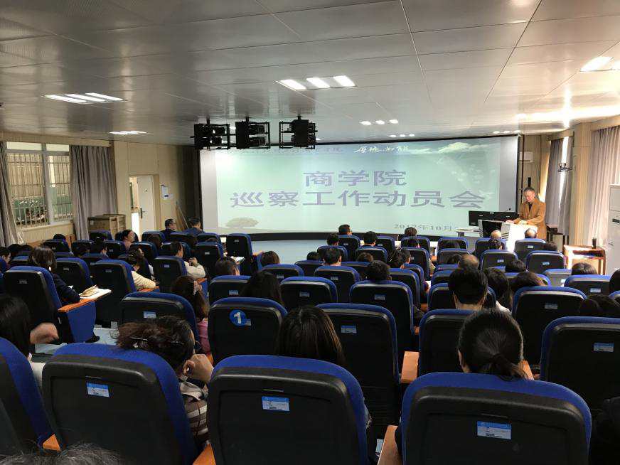 为响应十九大会议精神,积极配合我校巡察工作,全面做好各项工作准备,商学院于10月26日下午召开了全院巡察工作动员会。此次会议由罗院长主持召开,商学院全体教职工参加,会议内容主要包括巡察工作指示、商学院工作汇报和民主测评三大议题。