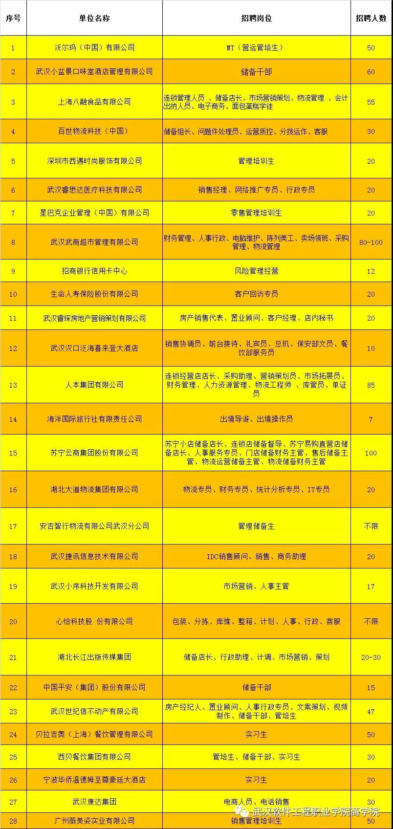 2019届毕业生秋季校园招聘会企业名单及岗位需求