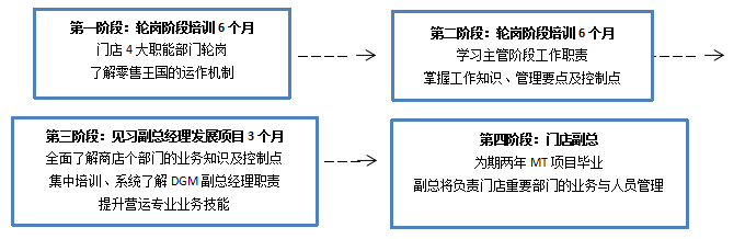 沃尔玛(中国)营运管培生项目是为了培养未来的门店管理着而设立,在项目中你可以选择进入沃尔玛购物广场,进行为期两年的专业学习与培训,并在两年后成长为副总经理。