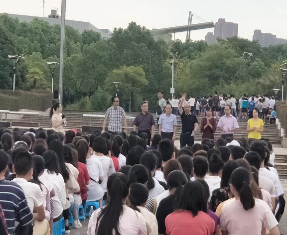 刘扬书记对新生的到来表示热烈欢迎,并希望大一新生要以军人的标准严格要求自我,发扬吃苦耐劳的精神,以饱满的斗志投入到军训中来,顺利完成以下几天的军事训练。并强调同学们在校期间的安全问题,让同学们自己提高警惕,防范传销。同时希望同学们一直发扬军训精神,敢于挑战,严守纪律,勤奋学习,注重思考,加强实践,讲究合作。