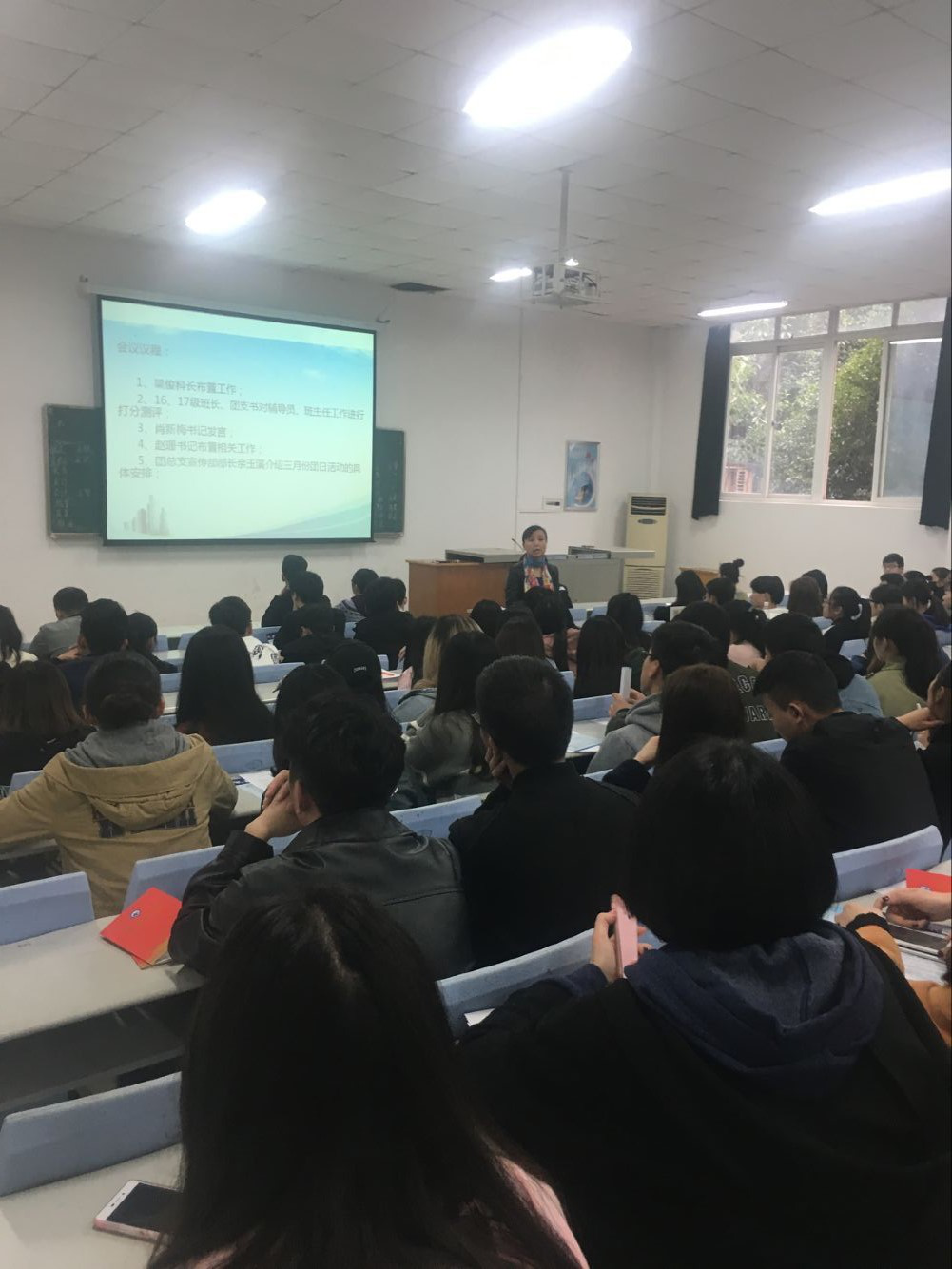 在学生干部对辅导员和班主任工作进行打分测评后,赵珊书记最后布置了共青团的相关工作。她为同学们详细介绍了3月份团日活动、3.15班会活动和周四读报活动的相关工作,要求各班认真对待,希望同学们能在活动中有所收获。