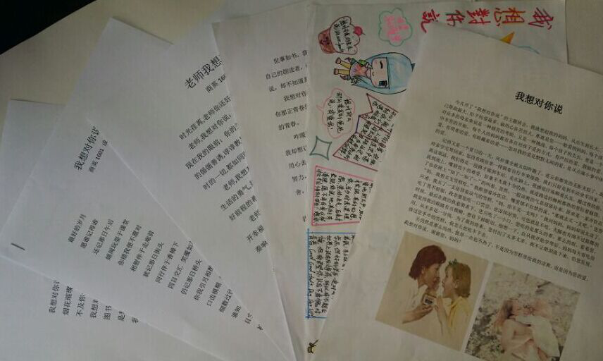 活动开展之后,同学们表现非常积极,纷纷参与到活动中、策划、安排、实施、举办,各班级积极开展丰富多彩的班会活动、同时也涌现出一批优秀的原创作品。在微视频作品中,同学们敞开心扉向亲人、老师、朋友、恋人或者自己吐露出心里话;还有的同学以“我想对你说”这一主题自编自谱唱成了一首歌!活动已经深入到同学们的内心,大家用自己的方式来表达自己的心声,这不仅仅只是言语上的表述,更是情感的升华。