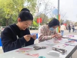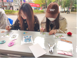 春意盎然的三月,我们迎来了“三七”女生节。为丰富大学生课余生话,弘扬女生节文化,关心、关爱广大女同学,商学院团总支、学生会在二食堂主干道旁举办以“手工DIY干花书签”为主题的女生节活动。