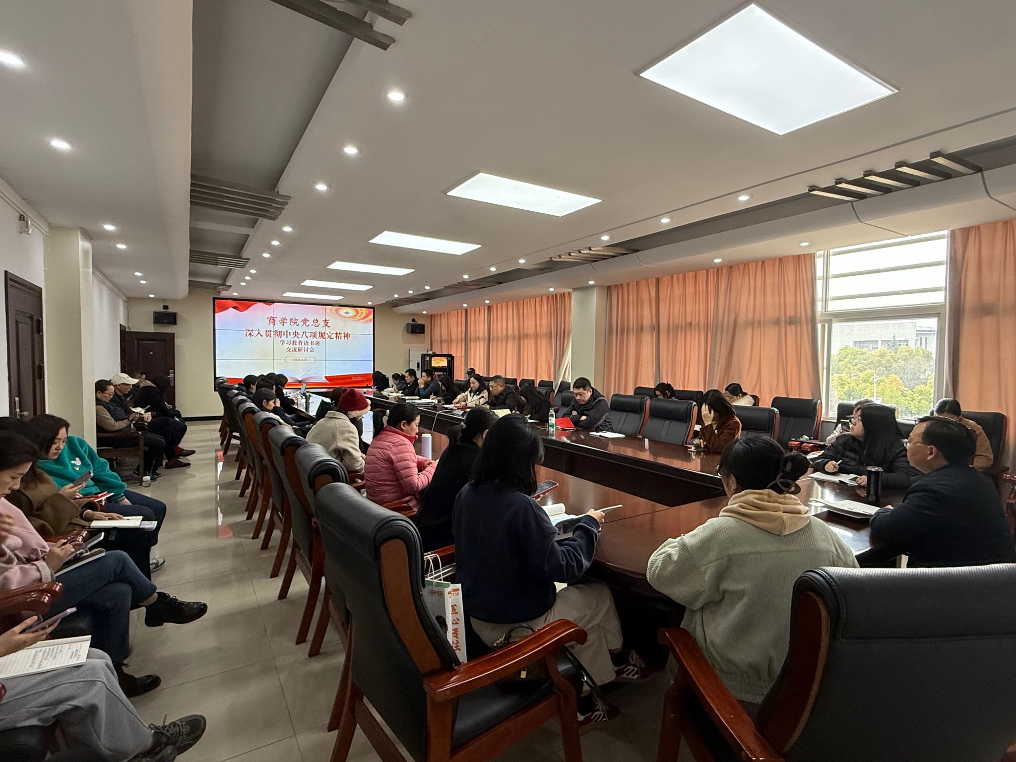 (通讯员 黄培)3月31日,商学院党总支在综合楼313召开了"深入贯彻中央八项规定精神"专题学习教育动员会暨交流研讨会。会议通过动员部署、专题党课、读书班研讨等形式,系统推进作风建设走深走实。党总支书记王鹰主持学习并作总结讲话,商学院领导班子成员及全体党员参加学习研讨。